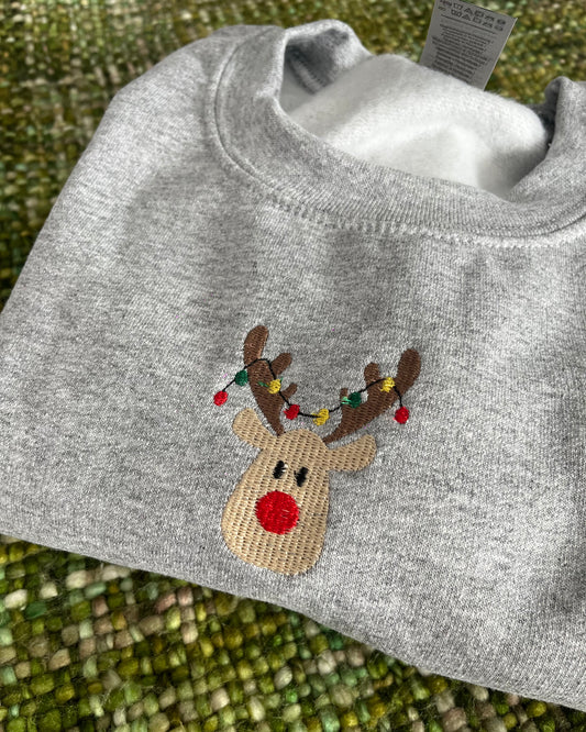 Rudolph Unisex Embroidered Grey Christmas Sweatshirt