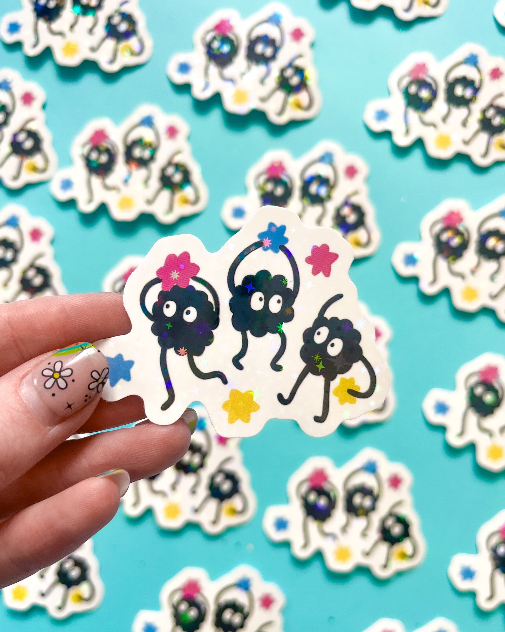 Soot Dust Ball vinyl sticker finished with holographic stars.